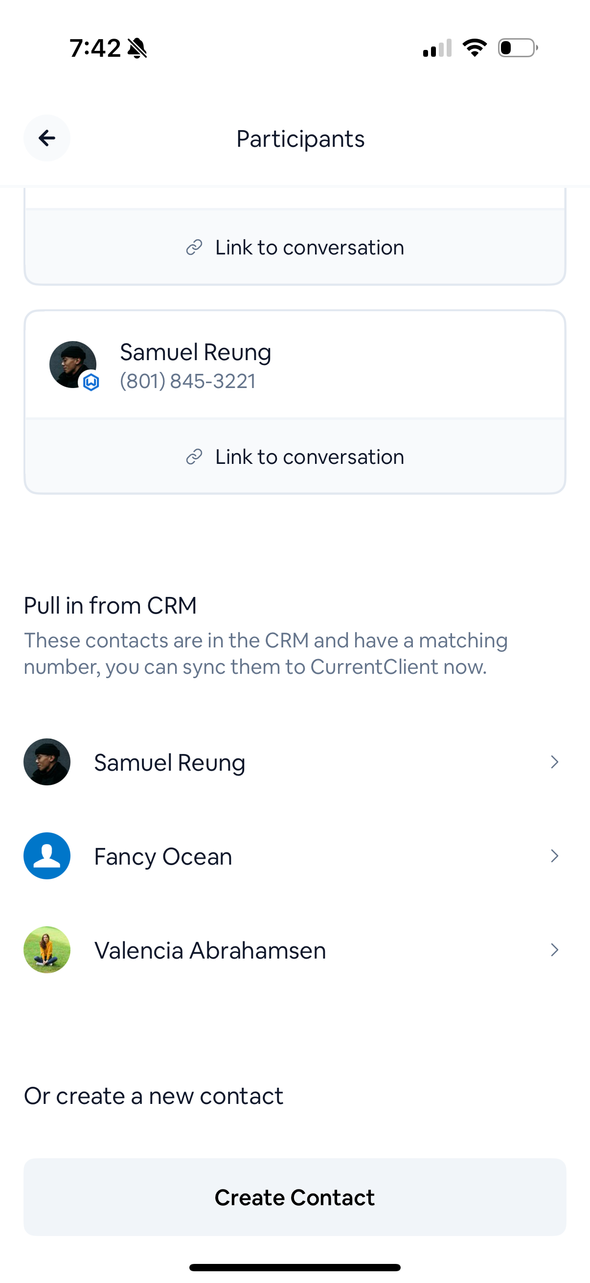CurrentClient can automatically sync your conversation history to your CRM, keeping everything organized in one place. When someone calls or texts you, we automatically check for a matching contact record and connect the conversation. If we don’t find a match, that’s okay! You can still communicate normally. We just won’t sync to the CRM until you link a contact.How can I attach a conversation to a client?